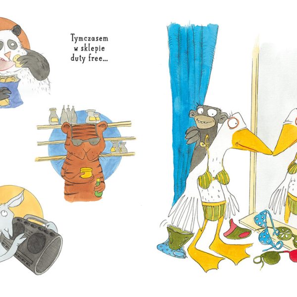 Gdy gromada zwierzęcych podróżnych nieoczekiwanie utknie na lotnisku, zdarzyć się może… bardzo dużo! Kolejna książka autora przezabawnych O ósmej na arce oraz