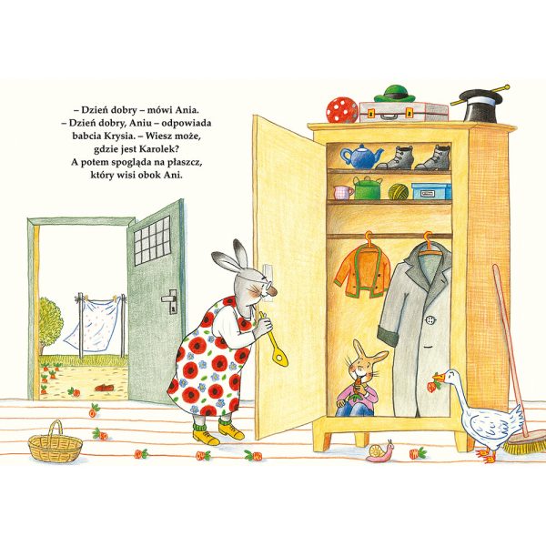 Karolek uwielbia bawić się u babci w ogrodzie. A gdy zbyt długo nie wraca, babcia wyrusza na poszukiwania… Przygody niesfornego króliczka autorki bestsellerowych