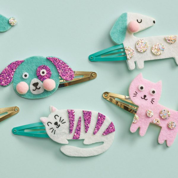 Janod: zestaw kreatywny do tworzenia biżuterii brokatowe spinki do włosów pieski i kotki 5+
