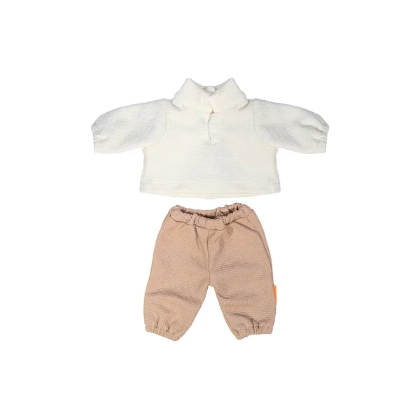 Komplet składa się ze spodenek, polarowej bluzy i czapeczki, przeznaczony dla lalek Miniland o wysokości 21 cm. Ukochana lalka lubi