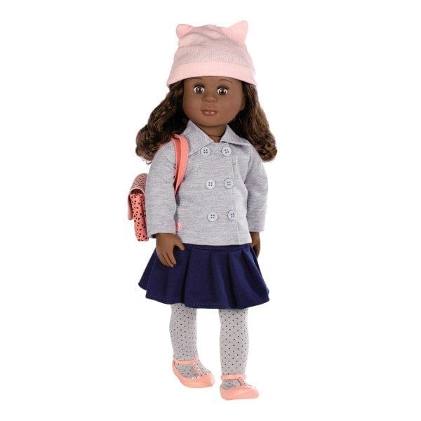 Modnie stylizowana lalka VALENCIA o wielkości 46cm; marka OUR GENERATION. Ruchome ręce, nogi, głowa i powieki. Miękki tułów. Piękne włosy.