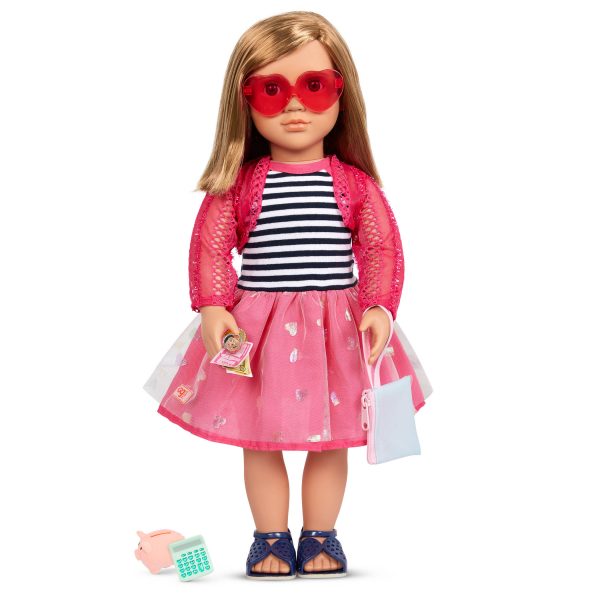 JULIE-MARIE – modnie stylizowana lalka o wielkości 46cm marki Our Generation. Blondynka z opaską, w spódniczce w kropeczki. Ruchome ręce,