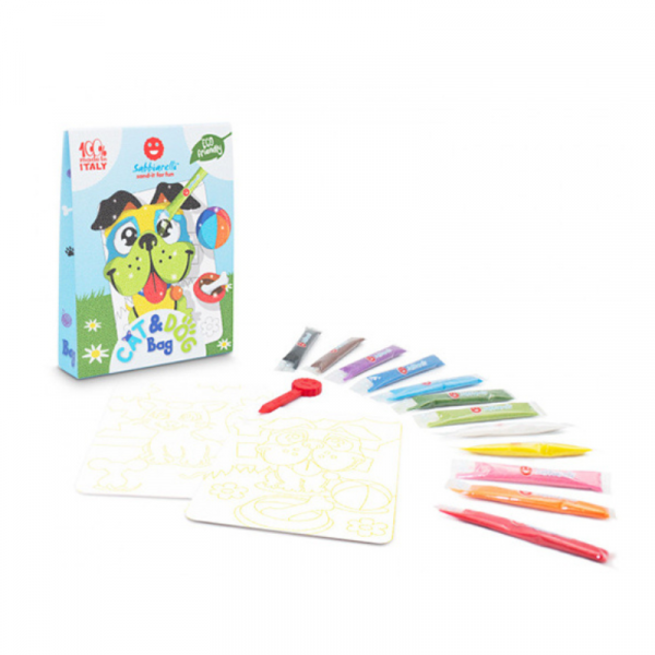 Bardzo pomysłowy, kreatywny i wyjątkowy zestaw do kolorowania magicznym piaskiem pochodzącym ze zmielonego marmuru. Magiczny piasek do kolorowania Sabbiarelli to