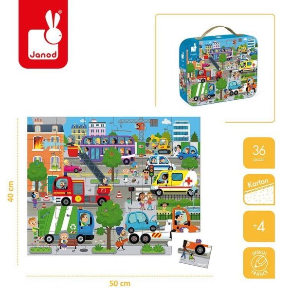 Janod: puzzle w walizce miasto 36 elementy 4+