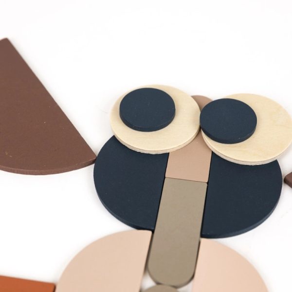 Drewniana układanka dla pobudzenia wyobraźni dziecka. Dzieci odkrywają kolory i kształty oraz wymyślają historie, tworząc zwierzęta, wzory lub abstrakcyjne dzieła.