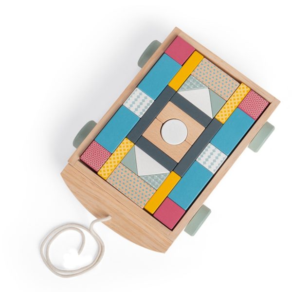 BIGJIGS: wózek z drewnianymi klockami 18m+