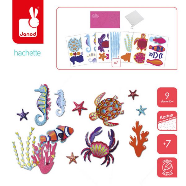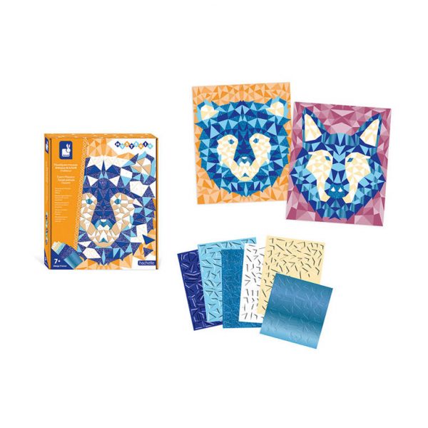 Zestaw kreatywny Mozaika Leśne zwierzęta z serii Misterix francuskiej marki JANOD zawiera 2 plansze-obrazki z tymi stworzeniami: niedźwiedziem i wilkiem.