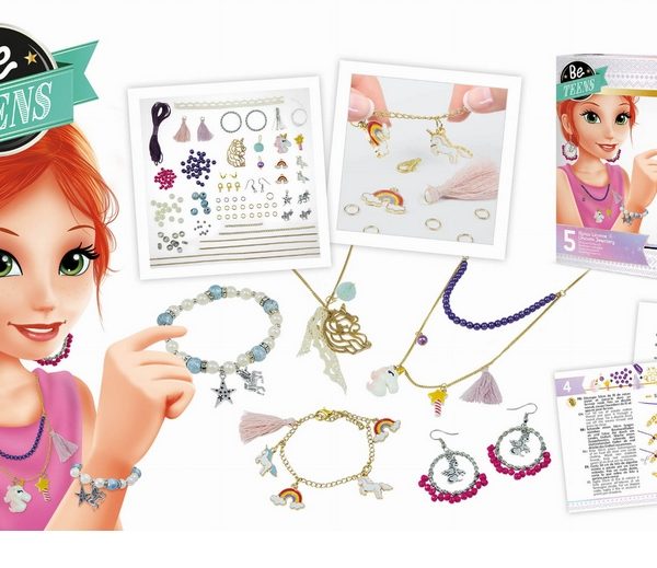 Podwójna bransoletka Szczęście od Auzou. Zestaw DIY do samodzielnego tworzenia bransoletek zawierający koraliki z literami, dwa pompony oraz dwa dzwoneczki.