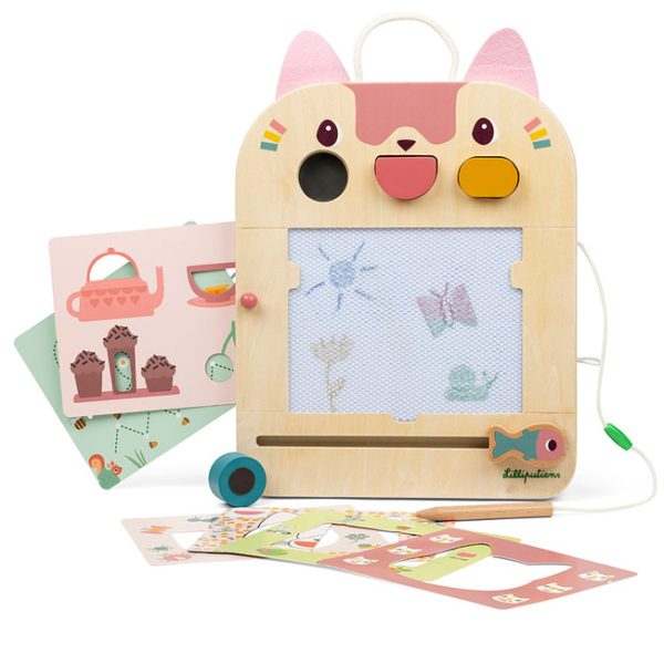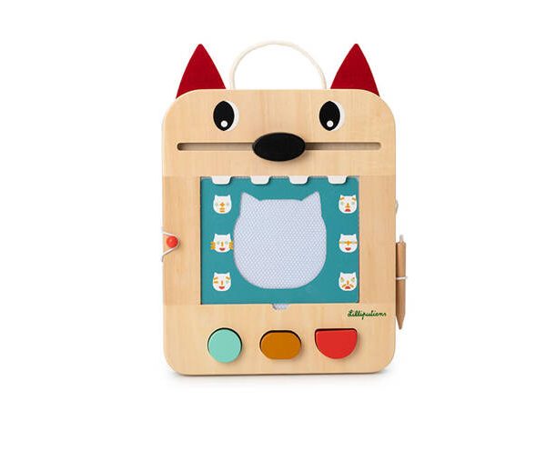 Drewniana tablica-znikopis z kolekcji Kotka Jeanne belgijskiej marki Lilliputiens to niebanalne źródło rozrywki i nauki dla ciekawskich maluszków. Zabawka ma