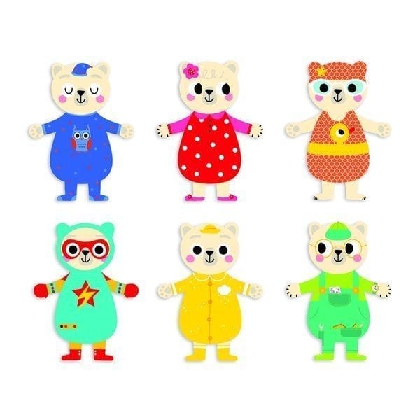 Drewniane wesołe Misie od Auzou. Zestaw 6 różnych zwierzątek do prawidłowego ułożenia przez dziecko. Zestaw uczy cierpliwości, kreatywności oraz pomaga