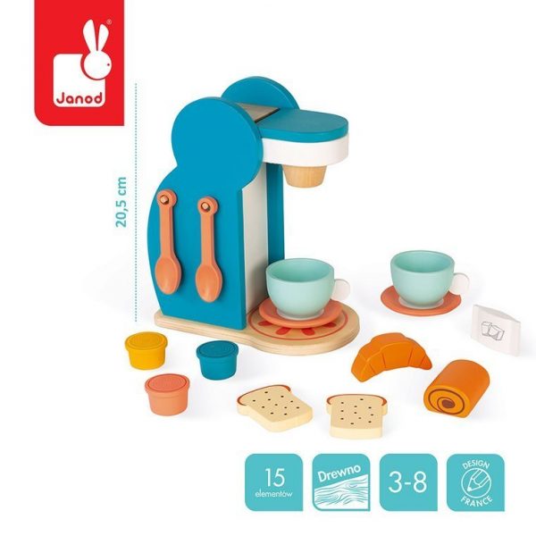 JANOD: Drewniany zestaw śniadaniowy ekspres do kawy + akcesoria