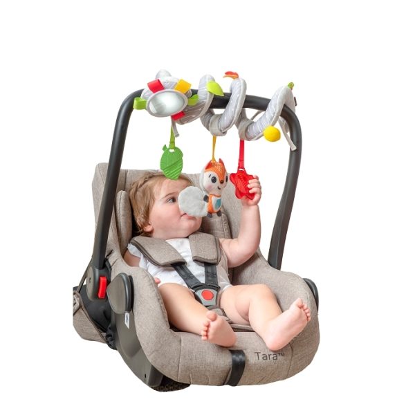 Zabawka edukacyjna w kształcie spirali idealnej do przyczepienia na wózku, łóżeczku bądź foteliku. Przyjemne kolory i różne struktury materiału rozwiną