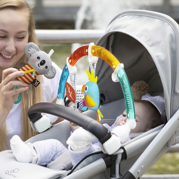 Wielofunkcyjny dwustronny łuk z zabawkami o innowacyjnej konstrukcji. Pałąk wyposażony jest w pełną gamę zabawek rozwojowych, każda z własnym niepowtarzalnym